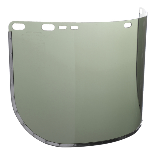 Jackson Safetyᆴ Model F30 Light Green Aluminum Bound Faceshield with a lens size of 9″ X 15 1/2″ X 0.04″ is made of acetate and helps in providing protection against dust, small particles and chemical splash. High-grade cast sheet acetate faceshield is best suited for use with the Jackson Safetyᆴ 170-SB headgear and for scratch resistance and premium optics. It assures 99.9% UV protection and also protection from top, bottom and sides. Faceshield needs primary eye protection and meets ANSI Z87.1 standards.