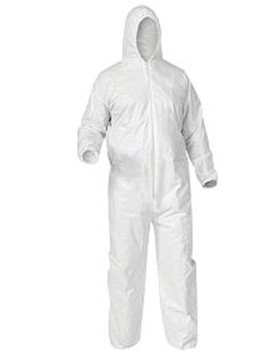 Kimberly-Clark Professional* KLEENGUARD* A35 Large White Shell Coverall with front zipper closure provides a liquid and particulate barrier which protects from toxic particulates. It features a breathable microporous film laminate protected by an outer fabric layer that provides a comfortable fit and durability. Disposable lightweight coverall comes with elastic wrists, ankles and hood that add comfort. It passes ASTM F1670 testing for penetration of blood and bodily fluids, which makes it resistant to liquids under pressure. It is typically used for liquid handling, pressure washing, maintenance and general manufacturing. It meets ANSI/ISEA 101-1996 sizing standard.