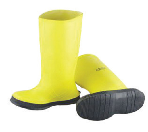 Onguard Size 9 Slicker Yellow 17″ PVC Overboots fit easily over many work shoes while offering waterproof protection. Overboots are ideal for concrete work, construction, food processing as well as utilities. Overboots include self-cleaning cleated outsole, non-conductive adjustable polyester strap with plastic buckle and snap. Overboots in injected molded seamless construction have excellent cold weather flexibility. It fits over many work shoes, boots and features non-absorbent polyester liner for quick drying and easy cleaning.